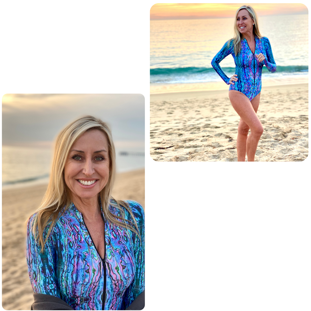 Our Amazing Abalone Swimsuit & Green Abalone Crop Top are a picture perfect match. This beautiful pattern is a best seller! The Crop Top offers extra support under your Swimsuit for a fantastic look and fabulous comfort. The Crop Tops are sun protective with 60+ UPF and are quick drying. The DiveSkin is 4-way stretch, figure-flattering, upper body rashguard swimsuit features 50+ UPF sun protection. You’ll own the ocean in this stretchy, breathable, fast-drying fabric that fits every figure. This is sun protection you’ll LOVE to wear!