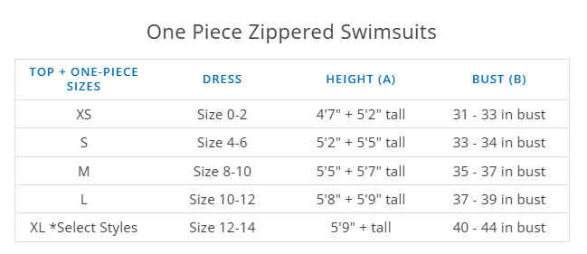 The One Piece Zippered Swimsuits are such a sexy creation. They are a high cut design that stays put. They have medium coverage across the bottom, or can be hiked up for more exposure. They will not ride up but stay where you put them. You can size them with confidence using the chart below. These Sun Protective Swimsuits have become the best choice for sun protective swim wear. Whether lounging around the pool or out on a paddle board or surf board, snorkeling, diving or on a boat or jetski, our 60+ UPF sun protection is the best in the world.