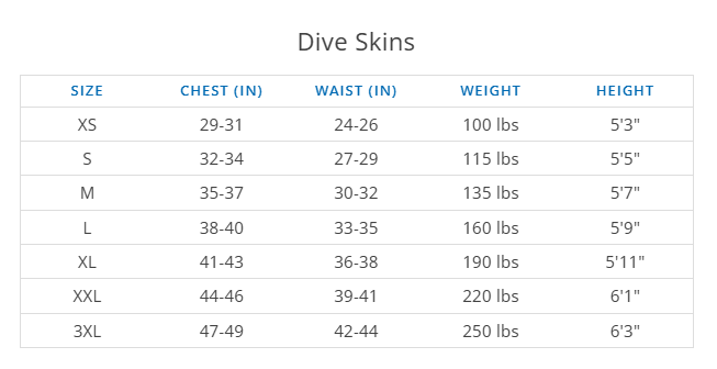 DiveSkins are designed to fit tightly, but with the Zippered SlipIns styles, torso length and height is important so sizing up may be necessary as with any one piece design. The first time you try it on, it should be tight and a little bit of a struggle. We do this to help support musculature and allow the body to work more efficiently, but mainly so you're looking good, held in at all the right places! Also if you are wearing it under a wetsuit, it is important that it fit like a second skin. They have a thumb hole and foot stirrups, so they stay in place when getting in and out of a wetsuit.