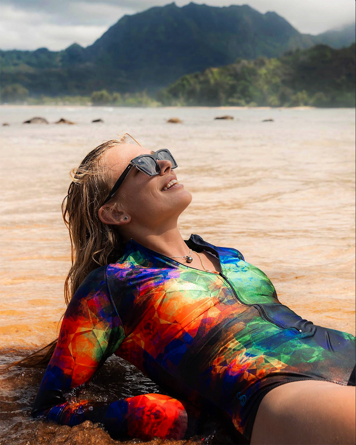 Be The Hottest Number On The Beach! The Crystaline swimsuit delivers fascinating color and intense style in a 4-way stretch, figure-flattering, upper body rashguard swimsuit with 50+ UPF sun protection. Show off the stunning mermaid pattern in stretchy, breathable, fast-drying fabric that fits every figure. This is sun protection you’ll LOVE to wear!